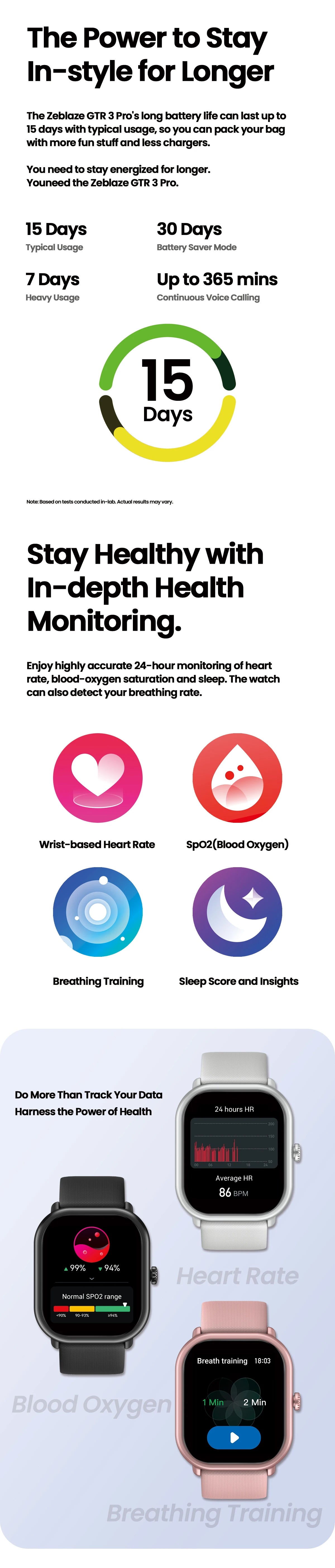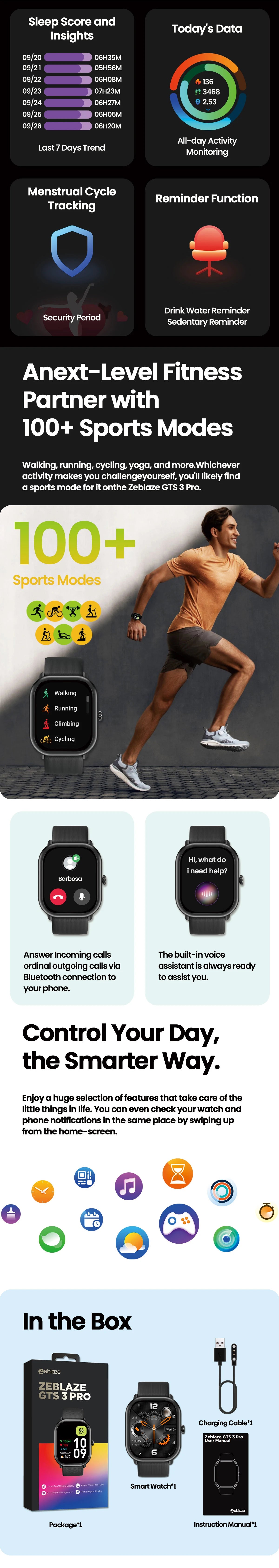 See everything in ultra-clear AMOLED with the Zeblaze GTS 3 Pro. Stay on top of your health, calls, and workouts—all in a sleek, waterproof design.