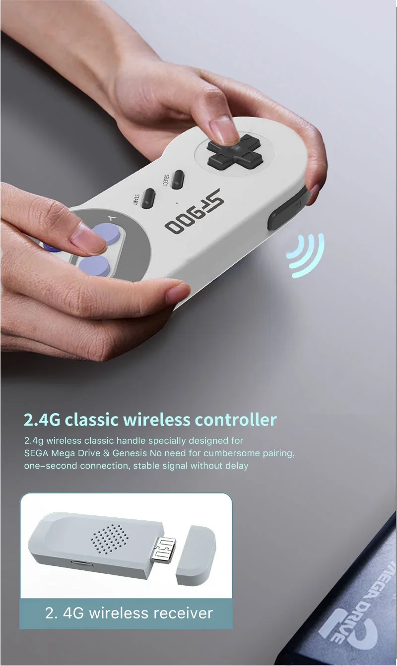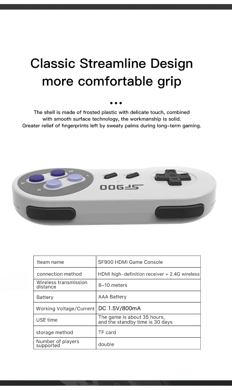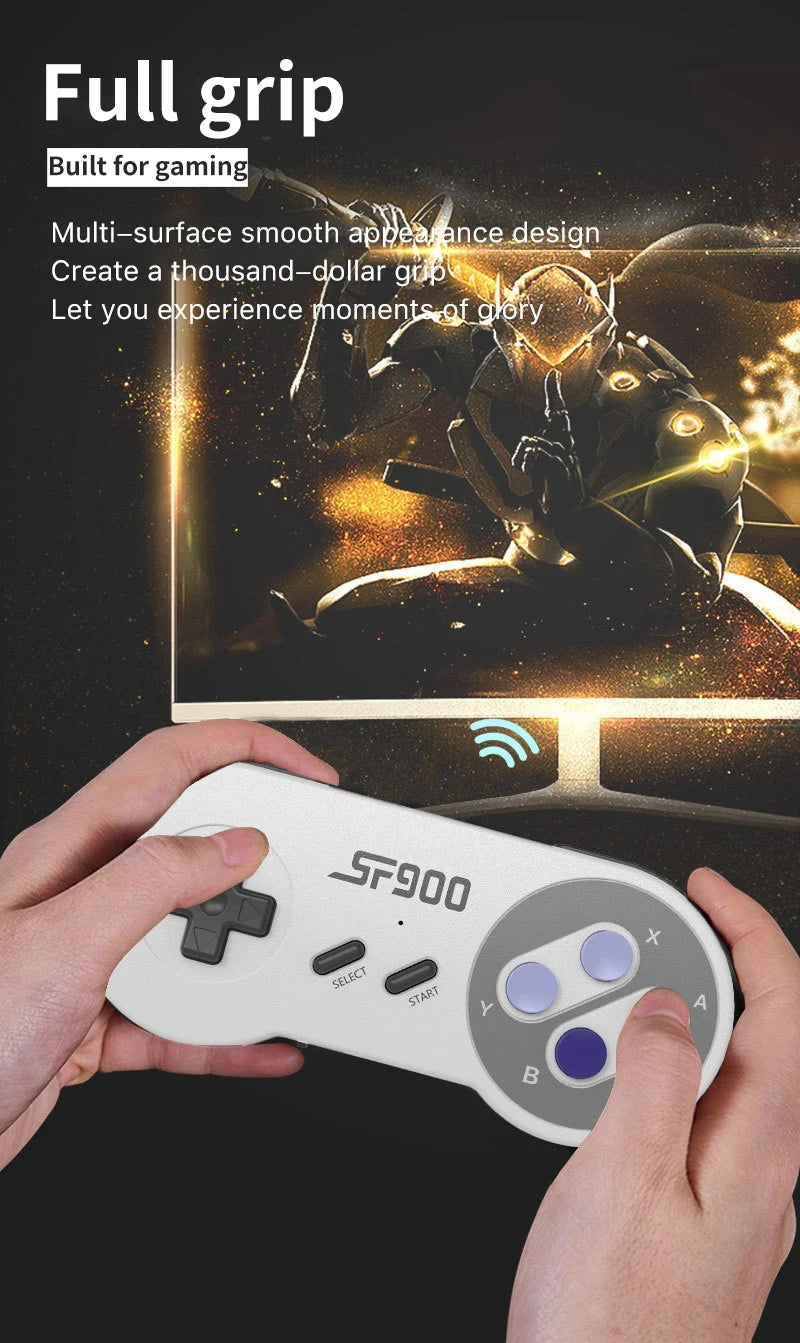 Relive the classics with the SF900 Retro Game Console. Packed with 5000 built-in games, wireless controllers, and HDMI output for smooth plug-and-play action!